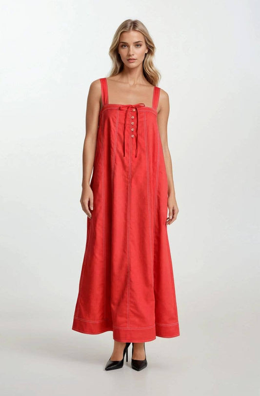 ELLA TOP STITCH & BUTTON DETAIL STRAP MIDI DRESS